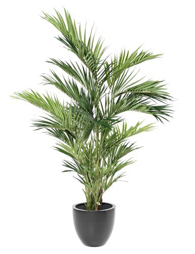 Внесете дъх на тропиците във всяко пространство с нашата изкуствена палма Кенция от Plants or Pots. Със своите грациозни, тъмнозелени перести листа, които се извиват с естествена лекота, тази палма пресъздава автентичния вид на Howea forsteriana – една от най-обичаните палми за интериорен дизайн. Поставена в изящна саксия от фибростъкло, тя е идеална за офиси, домове или търговски пространства, където желаете красота без нужда от поддръжка.