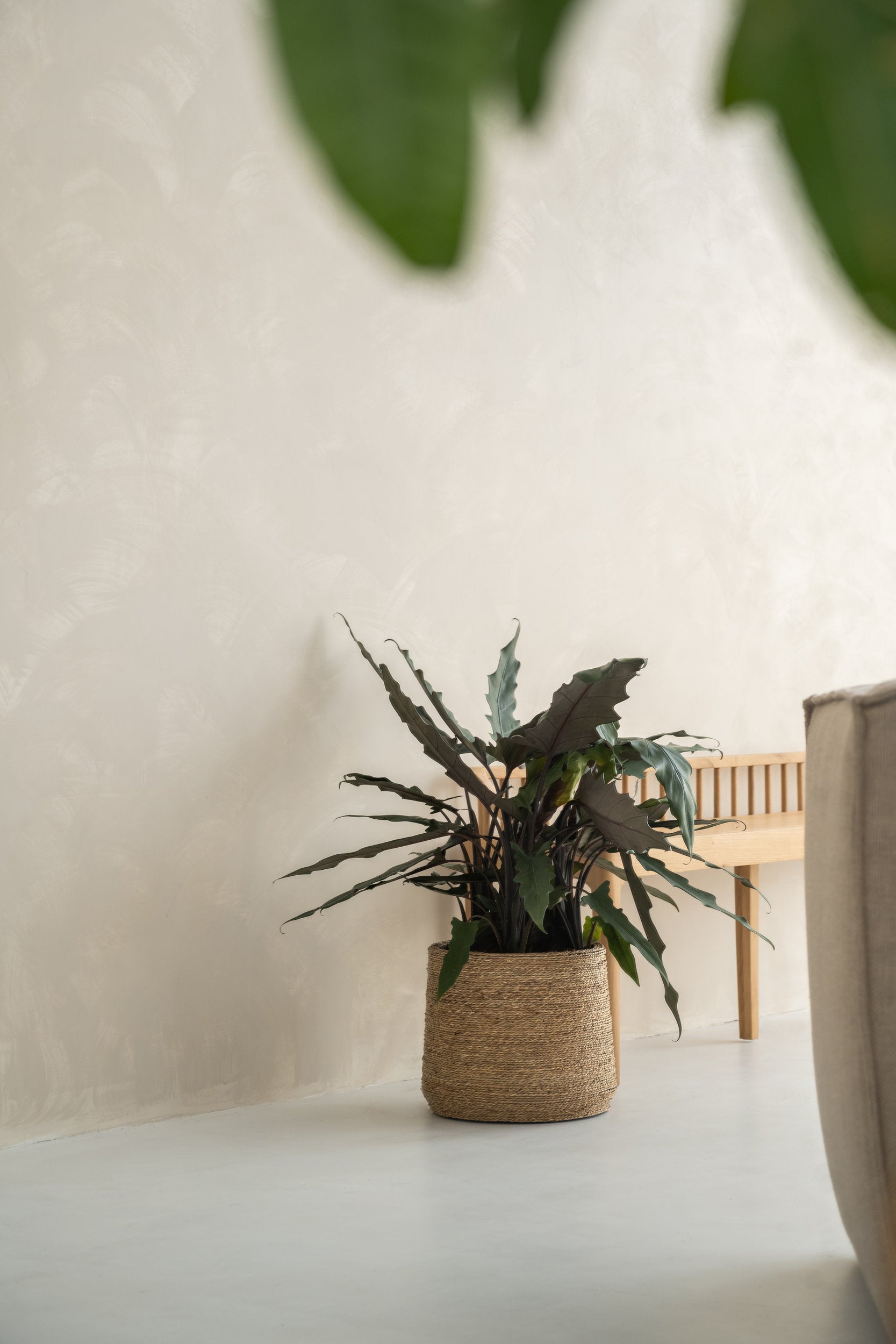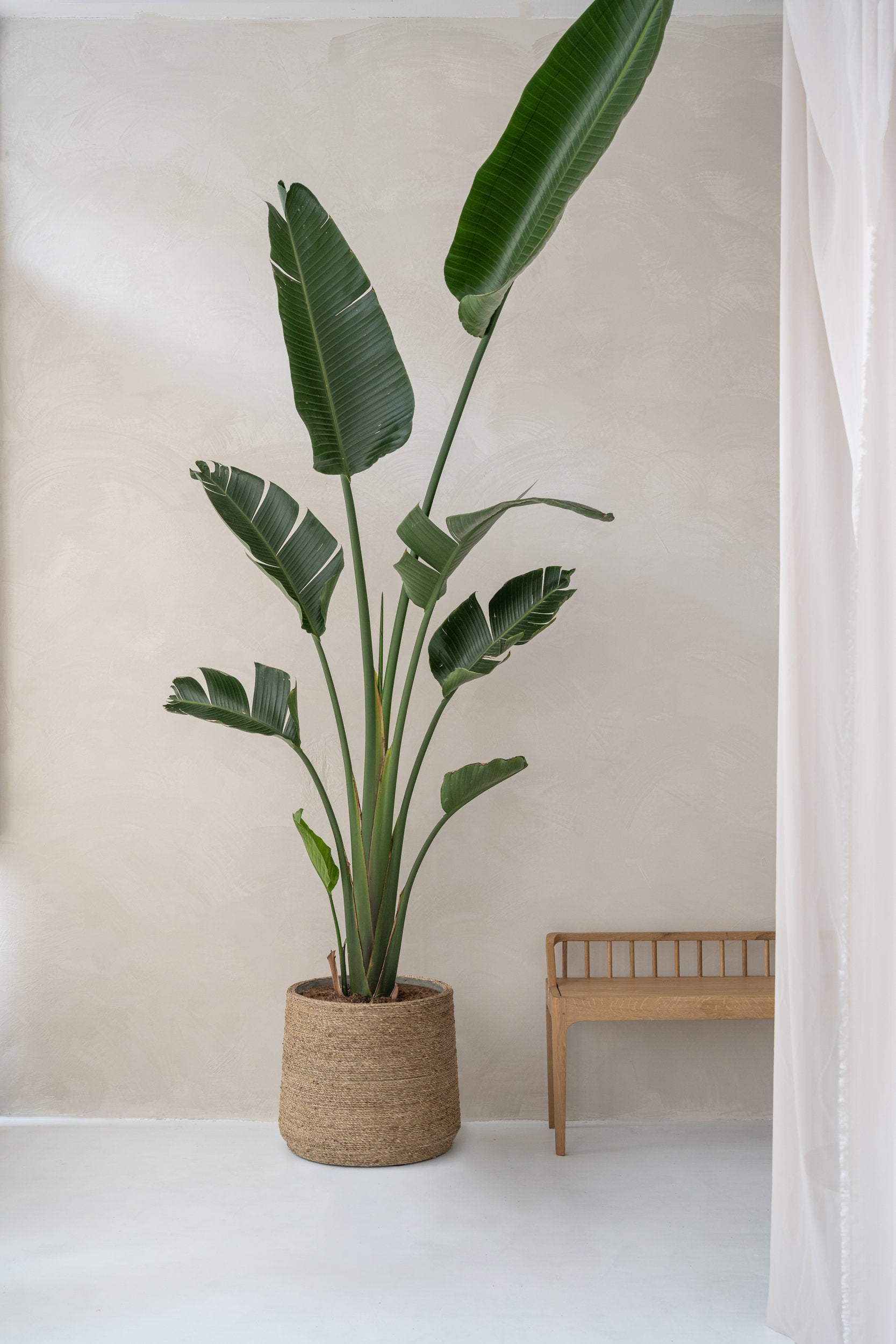 Поставете като централен акцент в ъгъл на всекидневната или до дивана – височината му създава драматичен ефект и прави стаята по-жива.Използвайте дизайнерска саксия. Перфектно за тъмен ъгъл или офис – добавя свежест без нужда от светлина.